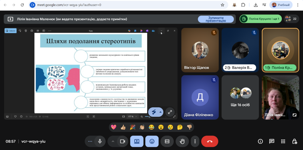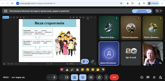 У березні 2026 року учні 9-11 класів влаштували прес-діалог «Як стереотипи впливають на наше життя?». Старшокласники з’ясували, що таке стереотипи та їх різновиди; проаналізували певні життєві ситуації та навели приклади з власного досвіду; а також познайомилися з можливими шляхами подолання стереотипного мислення. Під час активного спілкування зрозуміли, як діють стереотипні «фільтри» і чому вони обмежують особисту свободу бути собою. Такий захід став засобом формування навички протистояти стереотипним явищам, позитивного ставлення до принципів рівності, інклюзії, емпатії, доступності та створення комфортного середовища для всіх учасників освітнього процесу.