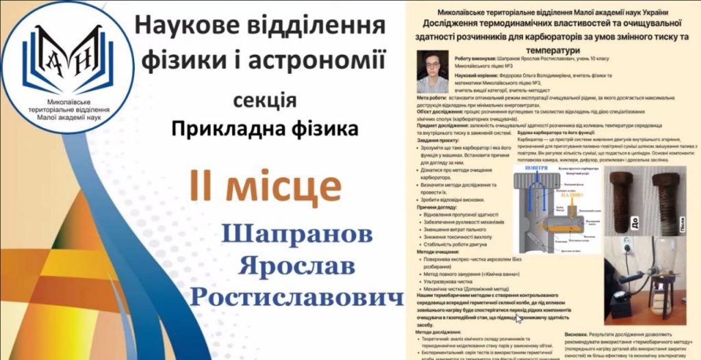 Миколаївський ліцей №3 вітає переможця МАН Шапранова Ярослава та вчителя фізики Федорову Ольгу Володимирівну.